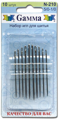 Иглы для шитья ручные "Gamma" N-210 для шитья №5/0-1/0 в блистере 10 шт.
