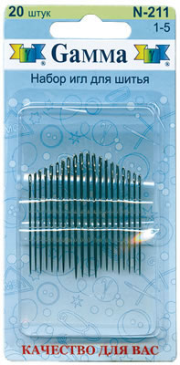 Иглы для шитья ручные "Gamma" N-211 для шитья №1-5 в блистере 20 шт.