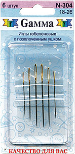 Иглы для шитья ручные "Gamma" N-304 гобеленовые №18-26 в блистере 6 шт.