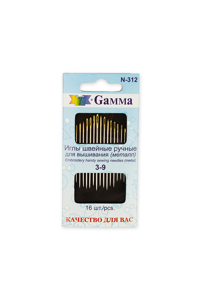 Иглы для шитья ручные "Gamma" N-312 для вышивания №3-9 16 шт. в конверте с прозрачным дисплеем