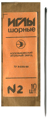 Иглы для шитья ручные 16-275 шорные №2 10 шт. в конверте